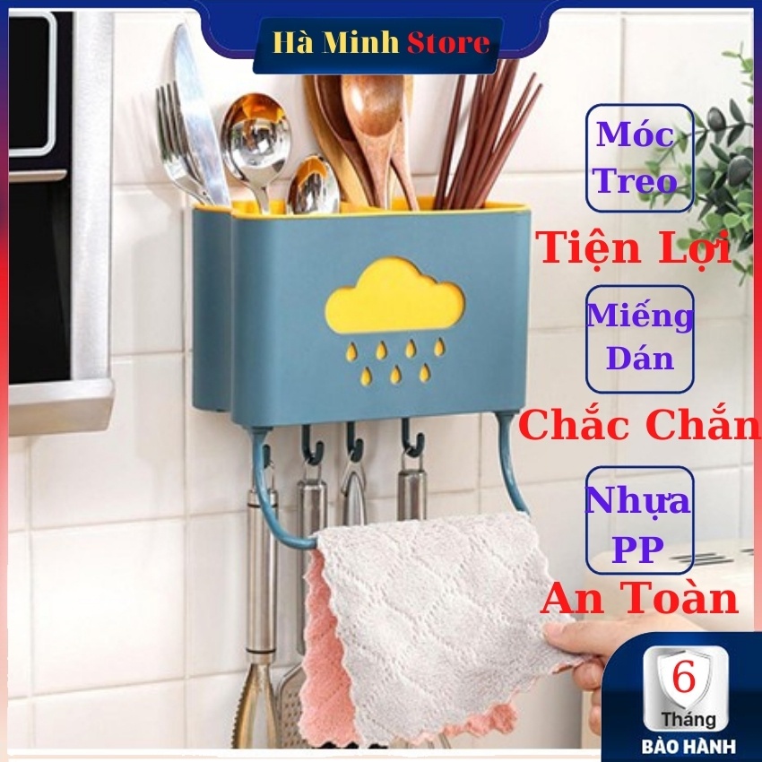 [Hàng Loại A] Ống Đựng Đũa, Muỗng Thìa Dĩa Dán Tường Hình Đám Mây Kèm Móc Treo Tiện Lợi - Giá, Kệ Đựng Đũa Gián Tường free ship